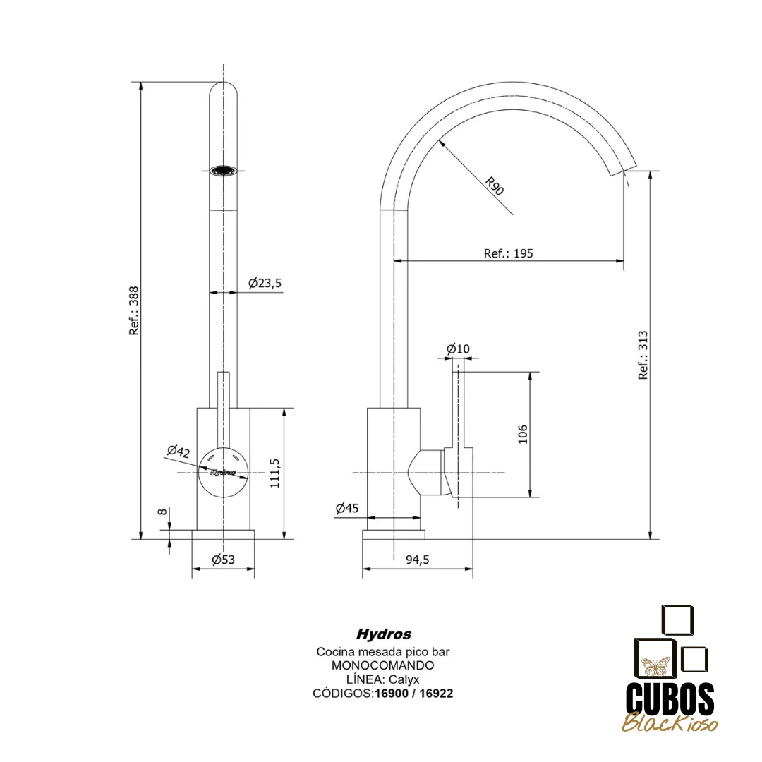 Cocina o Lavatorio Calyx Curva Piazza
