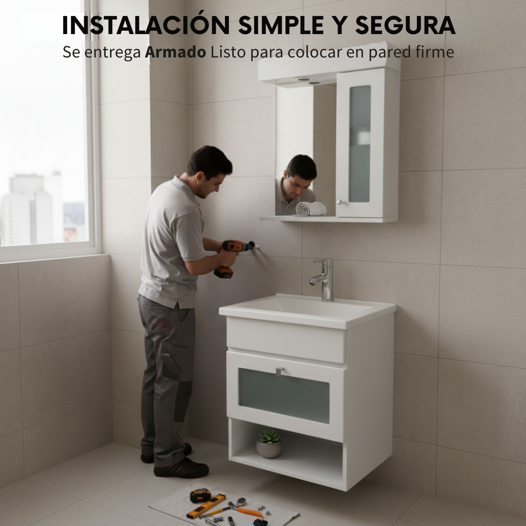 Vanitory 50cm Flotante Laqueado + Grifer...