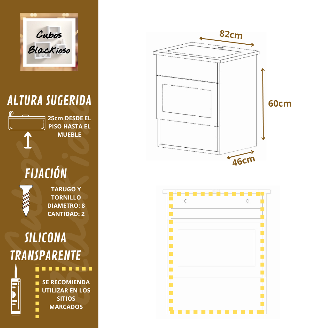 Vanitory 80cm Flotante + Tapa