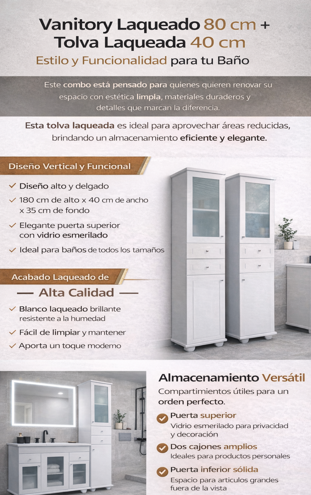Vanitory 80cm Laqueado + Tapa